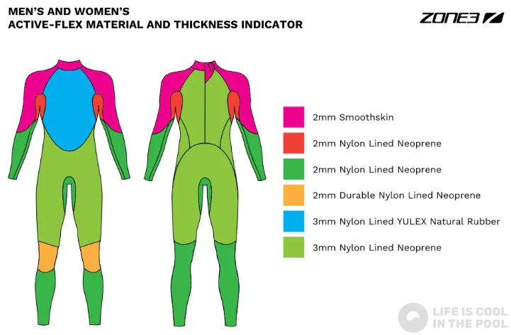 Neoprene material. It provides effective protection against cold water.